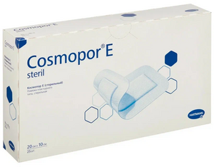 Повязки Cosmopor E Steril состоят из мягкой подушечки, гиппоаллергенного каучукового клея, прочного и эластичного основного полотна. — Эти характеристики позволяют обеспечить надежную защиту для ран после операции. Также повязки подходят для работы с незначительными или средними повреждениями кожи. Клеятся очень хорошо и прочно, но не прилипают к ране, обеспечивают стерильность поверхности.