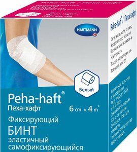 Peha-haft — самофиксирующийся бинт для удобной и надежной фиксации любых видов повязок. Бинт не надо завязывать. Достаточно прижать и повязка готова. Бинт сохраняет свободу движений конечностей.Мягкий и тонкий материал бинта легко моделируется особенно в области суставов, а также на конических и округлых частях тела.Воздухопроницаемый материал с содержанием хлопка обеспечивает комфорт при ношении, возможность длительной фиксации.Эластичный, растяжимость от 85% — бинт сохраняет свободу движений конечностей.Крепированная структура ткани и микроточечная пропитка гипоаллргенным клеем обеспечивают длительную оптимальную фиксацию и прилипание слоев бинта друг к другу, а не на тело или одежду человека.Бинт не требует завязывания, не сползает, не скручивается. Для фиксации достаточно 1,5 — 2 оборота бинта.Не содержит латекс!