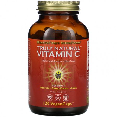 Пищевая ценностьРазмер порции: 8 капсул VeganCaps ™ (6,2 г)Порций в упаковке: 15 Количество в 1 порции% от суточной нормы*Калории25 Всего углеводов 5 г2%*Витамин C374 мг 416%* Процент от суточной нормы при условии потребления 2000 калорий в день. 100% из продуктов питания — нетоксичныйВерсия 3Ацерола, каму-каму и амлаПищевая добавкаСертифицированный веганский продуктОтсутствие глютена в составе подтверждено сертификатомСертификат кошерности Kosher PareveСоответствие стандарту TruGanic™? SourcingПредприятие, соответствующее экологическим требованиямСоблюдение принципов веганстваЭффективность подтверждена результатами лабораторных исследованийУпаковка Ecofresh™Витамин C Truly Natural ™ содержит натуральный витамин C с высокой биодоступностью из цельных ягод каму-каму, цельных ягод амлы и высококачественных экстрактов вишни ацеролы. Ацерола и каму-каму, произрастающие в Южной и Центральной Америке, являются двумя наиболее известными природными источниками витамина С. Амла, или индийский крыжовник, известен тем, что является обильным источником витамина С, а также других мощных антиоксидантов. Аюрведическая медицина насчитывает тысячи лет. Источники витамина С из цельных продуктов содержат необходимые кофакторы, которые повышают эффективность витамина С и усваиваются организмом. Натуральное содержание витамина С в цельной каму-каму и цельной амле повышено за счет полного набора натурального витамина С, а наши стандарты источников TruGanic ™ гарантируют, что синтетическая аскорбиновая кислота никогда не добавляется!
