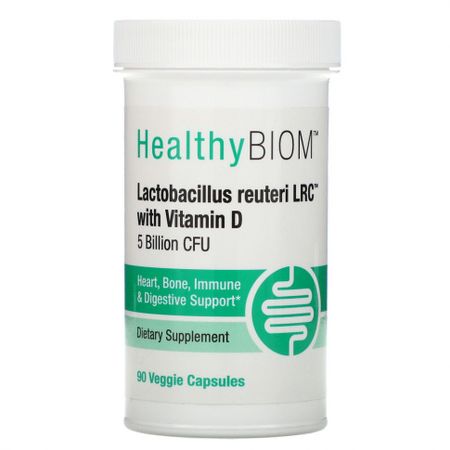 HealthyBIOM™ предлагает различные пробиотические формулы, которые поддерживают здоровое пищеварение и общее хорошее самочувствие. Lactobacillus reuteri LRC™ с витамином D содержит 5 миллиардов КОЕ в сочетании с веганским витамином D (холекальциферол, полученный из лишайников) в капсуле с замедленным высвобождением для поддержки сердца, костей, иммунитета и пищеварения*.