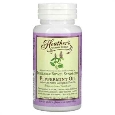 Информация о добавке Размер порции: 1 мягкая таблетка Состав 1 порции Масло перечной мяты (Mentha piperita) 0,2 мл/181 мг* Фенхелевое масло (Foeniculum vulgare) 0,02 мл/19,6 мг* Имбирное масло (Zingiber officinale) 0,02 мл/17,6 мг* * Суточная норма не определена. Tummy TamersКапсулы с имбирем и фенхелемПродукт лечебного питания для диетотерапии синдрома раздраженного кишечникаПри применении в диетотерапии перечная мята, имбирь и фенхель помогают облегчить болезненные спазмы кишечника, вздутие живота, неотложные позывы к мочеиспусканию и образование газов.Для употребления под наблюдением врачаНатуральный продукт без кофеинаНе содержит глютенаНизкое содержание ФОДМПHeather’s Tummy Tamers® — это продукт лечебного питания для устранения симптомов СРК с помощью диетотерапии. Клинические исследования показали, что в составе диеты мята перечная снимает боль в животе, устраняет диарею и неотложные позывы к мочеиспусканию, фенхель помогает расслабить кишечник и устраняет вздутие, имбирь содержит эффективные пищеварительные ферменты. Покрытые кишечнорастворимой оболочкой капсулы с маслом перечной мяты прошли клинические испытания, в результате которых выяснилось, что они помогают устранять симптомы СРК при применении в диетотерапии как у взрослых, так и у детей.Препарат Heather’s Tummy Tamers® специально разработан для эффективного успокоения кишечника, которое устраняет общие симптомы СРК за счет комбинированного воздействия масел перечной мяты, фенхеля и имбиря. Капсулы имеют дополнительную кишечнорастворимую оболочку, улучшающую переносимость для людей, имеющих склонность к изжоге или отрыжке.