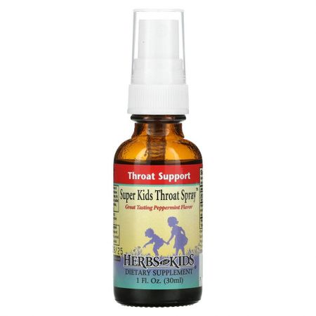 Herbs for Kids, Детский спрей для горла Super Kids Throat Spray со вкусом перечной мяты, 30 мл (1 жидкая унция)