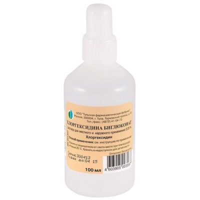 Показания При местном и наружном применении не абсорбируется в системный кровоток и не оказывает системного действия. Фармакологическое действие Антисептическое средство. Хлоргексидин проявляет бактерицидное действие (в отношении грамположительных и грамотрицательных бактерий) — при температуре 22°С и воздействии в течение 1 мин; фунгицидное действие при температуре 22°С и воздействии в течение 10 мин; вирулицидное действие (в отношении липофильных вирусов). На споры бактерий действует только при повышенной температуре. Стабилен, после обработки кожи сохраняется на ней в некотором количестве, достаточном для проявления бактерицидного эффекта. Сохраняет активность (хотя несколько сниженную) в присутствии крови, гноя, различных секретов и органических веществ. Не оказывает повреждающего действия на предметы, изготовленные из стекла, пластмассы и металлов. Лекарственное взаимодействие Применяется в нейтральной среде; при рН 5-8 разница в активности невелика; при рН более 8 выпадает осадок. Не применяют в сочетании с анионными соединениями, в т.ч. с мылом. Несовместим с карбонатами, хлоридами, фосфатами, боратами, сульфатами и цитратами. Применение жесткой воды снижает бактерицидные свойства. Совместим с лекарственными средствами, содержащими катионную группу (бензалкония хлорид, цетримония бромид).