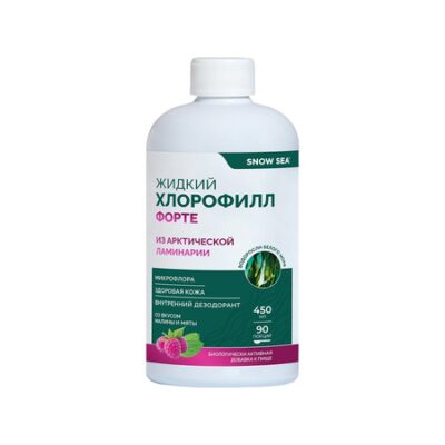 БАД к пище «ХЛОРОФИЛЛ форте SNOW SEA® со вкусом малины и мяты», 450 мл Хлорофилл форте SNOW SEA® представляет собой зеленый пигмент из арктической ламинарии, который играет активную роль в процессах фотосинтеза и содержит более 70 активных полезных веществ: адаптогены, минеральные соли, жирные кислоты, свободные аминокислоты и пептиды, витамины, полисахариды. Хлорофилл форте SNOW SEA® имеет повышенную концентрацию хлорофилла (5 мл содержит 50 мг хлорофилла). Хлорофилл форте SNOW SEA® является мощным антиоксидантом, способствует защите клеток от разрушения, активизирует клеточное дыхание и насыщает организм кислородом, восстанавливает микробиом кишечника. Область применения: • Восстановление микрофлоры кишечника, нормализация стула; • Детоксикация организма при отравлениях, вредных привычках; • Борьба с окислительным стрессом, ощелачивание организма; • Избавление от неприятного запаха тела (внутренний дезодорант) и дыхания; • Нормализация обмена веществ, снижение веса; • Восстановление жизненных сил, активности и бодрости; • Помогает бороться с признаками старения и поддерживает здоровое состояние тканей; • Улучшает состояние кожи, очищение проблемной кожи; • Способствует регенерации тканей после повреждений. Активные компоненты: комплекс хлорофилла ламинарии, натриевая соль медного комплекса хлорофиллина. Состав: вода очищенная, глицерин, комплекс хлорофилла ламинарии, натриевая соль медного комплекса хлорофиллина, ароматизатор малина (ароматические вещества: изопентил ацетат, диацетил, носители: мальтодекстрин, гуммиарабик, агент антислеживающий диоксид кремния аморфный), эфирное масло мяты перечной, смесь консервантов (сорбат калия, бензоат натрия) Форма выпуска: флакон с дозатором Срок годности: 24 месяца Условия хранения: хранить в сухом, защищенном от попадания прямых солнечных лучей недоступном для детей месте, не выше 25 С. После вскрытия флакон хранить в холодильнике при температуре 4+-2С не более 120 суток. Производитель: ООО «Архангельский водорослевый комбинат» Противопоказания: индивидуальная непереносимость компонентов. Способ применения: Взрослым по 5 мл (1 чайная ложка), 1 раз в день непосредственно перед или во время еды, предварительно встряхнув флакон, размешав в половине стакана (100 мл) воды. Продолжительность приема – 1 месяц. При необходимости прием можно повторить неограниченное количество раз. Срок годности: 2 года с даты изготовления. После вскрытия флакон хранить в холодильнике при температуре 4±20С не более 120 суток. Тип упаковки: Удобный флакон с дозатором, который позволяет легко наливать продукт.