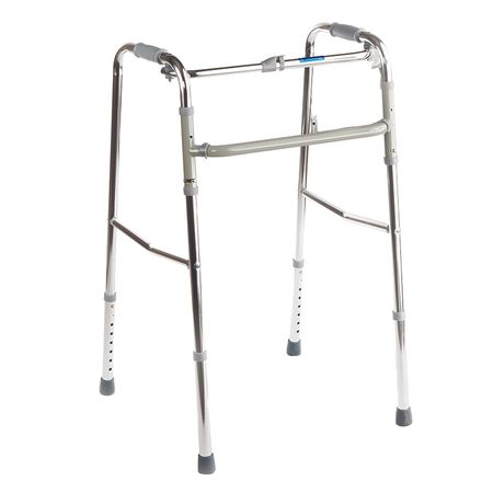 Складные алюминиевые опоры-ходунки W Universal — легкие, надежные и удобные ходунки с регулировкой по высоте, что позволяет с комфортом передвигаться людям с ростом от 160 до 180 см. Благодаря своей конструкции ходунки могут использоваться в двух режимах: «с шагом» и «без шага». В сложенном виде ходунки W Universal очень компактные, их легко брать с собой в поездку, в самолет, а также хранить дома. Особенности:Материал рамы: алюминий.Складная конструкция.С шагом/без шага.Регулировка по высоте.Фиксирующий замок. Размеры:S. Высота: 66-81 см, ширина: 50 смM. Высота: 75-95 см, ширина 55 см Материал Алюминий Рама Складная Тип конструкции Шагающий Расстояние между поручнями 46 см Регулировка по высоте 66-81 см, 75-95 см Размеры 28 х (50)55 х 78 см Максимальная нагрузка 135 кг Вес 2,75 кг Гарантийный срок — 6 месяцев со дня продажи Изделие медицинского назначения обмену и возврату не подлежит.