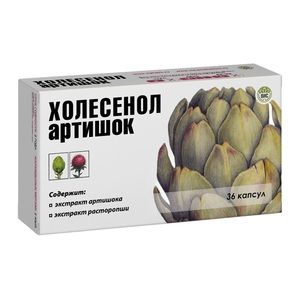 Рекомендуются в качестве биологически активной добавки к пище – дополнительного источника цинарина, флаволигнанов. Средство, способствующее улучшению функционального состояния печени и желчевыводящих путей.Печень — самый большой внутренний орган человека. Она расположена в правом подреберье. Печень — непарный орган, то есть второго такого органа в организме нет, и нарушение функции печени опасно для жизни.Главная функция печени – фильтрация чужеродных, токсичных, вредных веществ, работа печени напрямую связана с функциональностью поджелудочной железы, двенадцатиперстной кишки, желудка, а нарушение функции печени всегда приводит к появлению хронических заболеваний.Рекомендуемый суточный прием «ХОЛЕСЕНОЛ АРТИШОК» (1 капсула) содержит:Экстракт артишока (сертифицирован и стандартизирован по цинаринам) — 380 мгЭкстракт расторопши (сертифицирован и стандартизирован по флавонолигнанам) — 10 мгАртишок (Cynara scolymus) является одним из древнейших растений, выращиваемых в мире, а его экстракты, полученные из различных частей растения (листьев, плодов и корней), применялись с незапамятных времен. Эффекты биологически активных веществ артишока на печень и желчный пузырь были хорошо известны еще в 17 веке. Артишок – незаменимый элемент так называемой «средиземноморской диеты». Артишок богат широким спектром активных веществ, включая витамин С, витамин А, фолиевую кислоту, биотин, марганец, калий, полифенольные соединения (кофеинохиновая, хлорогеновая, феруловая и другие кислоты) ниацин, рибофлавин и тиамин. Цинарин экстракта артишока в сочетании с фенолокислотами способствует желчегонному, гепатопротекторному действию. Биологически активные вещества артишока способствуют улучшению пищеварения, усвоению жирорастворимых питательных веществ и нормализации уровня холестерина в крови.Расторопша (Sílybum mariánum) издавна используется в качестве гепатопротектора – восстановителя печени и защитника функции печени. Способствуя иммуномодулирующему и антиоксидантному воздействию на клетки печени, расторопша обеспечивает восстановление ткани печени после повреждения токсинами и шлаками.В плодах расторопши пятнистой содержатся флавоноиды и флавонолигнаны (силибин, силикристин, силидианин, и др.).Активные компоненты расторопши восстанавливают поврежденные клеточные мембраны, помогая поврежденным клеткам нормализовать свои функции после негативных воздействий алкоголя, лекарств и неправильного питания. Улучшается образование и отток жёлчи, секреторная и двигательная функция желудочно-кишечного тракта.