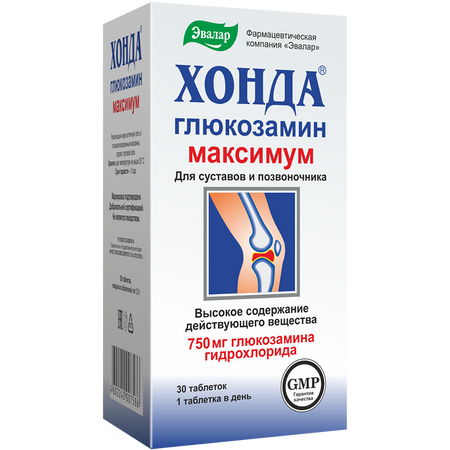 Главная » Аптека Хонда Глюкозамин Максимум Таб.№30 Просмотров 3 Хонда Глюкозамин максимум способствует: поддержанию хрящевой ткани суставов и позвоночника в здоровом состоянии;естественному обновлению хрящевой ткани суставов и позвоночника;сохранению подвижности суставов. Эвалар