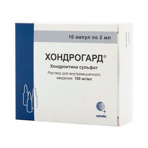 Показания к применениюдегенеративно-дистрофические заболевания суставов и позвоночника:- остеоартроз периферических суставов;- межпозвонковый остеохондроз и остеоартроз;ускорение формирования костной мозоли при переломах.Противопоказанияповышенная чувствительность к препарату или его компонентам;кровотечения и склонность к кровоточивости;тромбофлебиты;беременность и период лактации (данные о безопасности применения препарата в настоящее время отсутствуют);детский возраст.Побочное действиеВозможно усиление действия непрямых антикоагулянтов, антиагрегантов, фибринолитиков, что требует более частого контроля показателей свертывания крови при совместном применении.СоставРаствор для внутримышечного введения, состав (1 амп./1 шприц):действующее вещество:хондроитина сульфат натрия — 100/200 мгвспомогательные вещества: бензиловый спирт — 9/18 мг; натрия метабисульфит — 1/2 мг; натрия гидроксид — до pH 6–7,5/до pH 6–7,5; вода для инъекций — до 1/2 млВзаимодействие с другими препаратамиМеры предосторожности