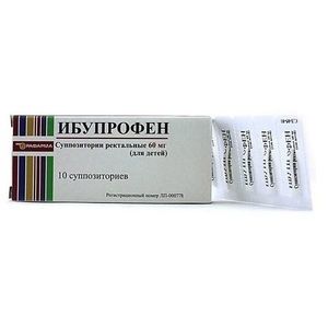 Показания к применениюИбупрофен для детей применяют с 2 месяцев жизни до 3 лет в качестве жаропонижающего средства при острых респираторных заболеваниях, гриппе, детских инфекциях, постпрививочных реакциях и других инфекционно-воспалительных заболеваниях, сопровождающихся повышением температуры тела. Препарат используют как обезболивающее средство при болевом синдроме слабой или умеренной интенсивности, в том числе: головной и зубной боли, мигрени, невралгиях, боли в ушах и в горле, боли при растяжениях и других видах боли.ПротивопоказанияИбупрофен для детей не следует применять при: повышенной чувствительности к ибупрофену, ацетилсалициловой кислоте или другим НПВП, а так же к другим компонентам препарата; бронхиальной астме, крапивнице, рините, спровоцированных приемом ацетилсалициловой кислоты (салицилатами) или другими НПВП; наличии у ребенка язвенного поражения желудочно-кишечного тракта; активном желудочно-кишечном кровотечении; воспалительных заболеваниях кишечника; подтвержденной гипокалиемии; заболеваниях крови: гипокоагуляции, лейкопении, гемофилии; почечной и/или печеночной недостаточности; снижении слуха.Побочное действиеПри применении препарата побочные действия наблюдаются редко, однако возможно появление следующих побочных эффектов: со стороны желудочно-кишечного тракта: тошнота, рвота, ощущение дискомфорта или боли в эпигастрии, слабительный эффект, возможно возникновение эрозивно-язвенных поражений, кровотечений; аллергические реакции: кожная сыпь, зуд, крапивница, обострение бронхиальной астмы, ангионевротический отек, анафилактоидные реакции, анафилактический шок, бронхоспазм, лихорадка, многоформная экссудативная эритема (в том числе синдром Стивенса-Джонсона), токсический эпидермальный некролиз (синдром Лайелла); со стороны нервной системы: головная боль, головокружение, психомоторное возбуждение, бессонница; сердечно-сосудистая система: тахикардия, повышение артериального давления; со стороны органов кроветворения: анемия, тромбоцитопения, агранулоцитоз, лейкопения; со стороны мочевыделительной системы: нарушение функции почек, цистит. При появлении этих и других побочных эффектов следует прекратить прием препарата и обратиться к врачу.СоставАктивное вещество: ибупрофен — 0,06 г. Вспомогательное вещество: жирных кислот глицериды (жир твердый, Витепсол Н 15) — 0,74 г.Взаимодействие с другими препаратамиИбупрофен при одновременном применении с антикоагулянтами может привести к усилению их действия. Повышает концентрацию дигоксина, фенитоина, метотрексата, лития в плазме крови при одновременном применении с этими препаратами. Снижает эффективность диуретиков и антигипертензивных средств. Усиливает побочные эффекты минералокортикостероидов и глюкокортикостероидов.