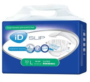 Подгузники для взрослы iD Slip предназначены для использования при тяжелой степени недержания. Они особенно рекомендованы для людей с ограниченной подвижностью или для лежачих больных.Многоуровневый впитывающий слой позволяет подгузникам iDSlIP впитывать и надежно удерживать внутри большое количество жидкости и блокировать неприятные запахи.Благодаря анатомической форме подгузника, манжетам в области ног, эластичному на спине поясу и многоразовым застежкам-липучкам, которые надежно фиксируют подгузник, продукт отлично прилегает к телу и гарантирует надежную защиту от протеканий и максимальный комфорт.Индикатор влагонасыщения показывает степень наполнения подгузника.ХарактеристикиМногоуровневый впитывающий слойЗащита от протеканийЭластичный поясМгновенное блокирование запахаИндикатор влагонасыщенияПротестировано дерматологическиМногоразовые застежки-липучкиПодходят для людей с обхватом талии от 100 до 160 см.