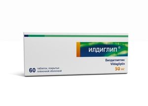 Таблетки круглой формы, двояковыпуклые, от белого или почти белого цвета до белого с желтоватым оттенком цвета. Характеристика препарата:Препарат Илдиглип содержит действующее вещество вилдаглиптин.Препарат Илдиглип используют в качестве терапии в случае неэффективности диетотерапии и физических упражнений у взрослых старше 18 лет с сахарным диабетом 2 типа. Он помогает контролировать уровень глюкозы в крови. Препарат Илдиглип является пероральным гипогликемическим препаратом.В зависимости от Вашего состояния лечащий врач может назначить препарат Илдиглип в качестве монотерапии или в комбинации с другими гипогликемическими препаратами.