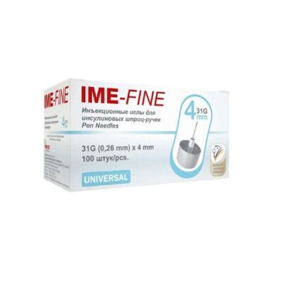 Компания IME-DC — разработчик и производитель портативных глюкометров, предназначенных для диагностики, аксессуаров и комплектующих к ним. Бренд IME-FINE (ИМЕ-ФАЙН) — иглы выпускаются различной длины и диаметра, что позволяет больным диабетом выбрать оптимальную иглу, в соответствии с рекомендациями лечащего врача. Совместимы со всеми популярными одноразовыми и многоразовыми шприц-ручками: HumaPen Luxura, HumaPen Ergo, ХумаПен Саввио, ОптиКлик, ОптиПен, КомфортПен, АутоПен Классик, SoloStar DongBao Pen, FlexPen, NovoPen 3, НовоПен 4, НовоПен Эхо, БиосулинПен, Виктоза, БиоматикПен и многими другими. ИГЛЫ IME-FINE УНИВЕРСАЛ ИНЪЕКЦ ОДНОРАЗ ДЛЯ ИНСУЛИН ШПРИЦ-РУЧЕК 31G 0,26Х4ММ — подходят иглы для шприц-ручек от 90% всех производителей, представленных на рынке. Технические характеристики: тип: одноразовые, стерильные материал: медицинская сталь длина иглы 4 mm наружный диаметр 0,26 mm Инсулиновые иглы для шприц-ручек IME-FINE (ИМЕ-ФАЙН) изготавливаются из высокопрочной медицинской стали с универсальной винтовой резьбой Преимущества продукции: • Универсальная винтовая резьба, подходящая для большинства шприц-ручек • Безболезненный прокол • Не оставляет синяков, ссадин и гематом • Индивидуальный подбор длины иглы для каждого человека в зависимости от его индивидуальных особенностей • Прошли все необходимые испытания и получили разрешительную документацию Особенности продукции: • «Soft-feel» — специальная электронно-лазерная шлифовка обеспечивает комфортное проникновение и не травмирует ткани при инъекции • Технология «Thin-wall» — снижает сопротивление тока инсулина и уменьшает усилие, необходимое для инъекции • Особая заточка и силиконовое покрытие обеспечивают мягкое введение и делают уколы практически безболезненными • Точная фиксация — безопасное внутреннее введение • Подходят для любого возраста, 4 различных вариантов игл IME-FINE (длина/диаметр) создают возможность индивидуального подбора иглы для каждого пациента Размеры игл IME-FINE: • 31G (диаметр 0,26 мм) х длина иглы 4 мм • 31G (диаметр 0,26 мм) х длина иглы 5 мм • 31G (диаметр 0,26 мм) х длина иглы 6 мм • 31G (диаметр 0,26 мм) х длина иглы 8 мм Иглы предназначены для подкожного введения инсулина. Совместимы со всеми популярными одноразовыми и многоразовыми шприц-ручками: HumaPen Luxura, HumaPen Ergo, ХумаПен Саввио, ОптиКлик, ОптиПен, КомфортПен, АутоПен Классик, SoloStar DongBao Pen, FlexPen, NovoPen 3, НовоПен 4, НовоПен Эхо, БиосулинПен, Виктоза, БиоматикПен и многими другими.