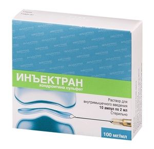 Инъектран раствор для внутримышечного введения &mdash, стимулятор репарации тканей. Хондроитина сульфат &mdash, основной компонент протеогликанов, составляющих вместе с коллагеновыми волокнами хрящевой матрикс.Оказывает хондростимулирующее, регенерирующее, противовоспалительное и анальгезирующее действие.