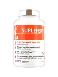 Капсулы Унитекс Суплефер от усталости.Железо – основной компонент красных кровяных телец, необходимый для транспортировки кислорода в организме. Улучшение кислородного и энергетического обмена повышает жизнеспособность и снимает усталость. Приём железа особенно рекомендуется для компенсации его потерь (месячные, разрывы мелких кровеносных сосудов при повторяющихся стрессах), а также при увеличенных нагрузках на организм (например, беременность), или регулярном ощущении усталости.Действие железа усиливается витаминами группы В:Витамин В2 участвует в метаболизме железа, а витамины B1, B3, B5, B6, B8, B9 и B12 также способствуют снижению усталости.