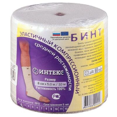 Интекс Бинт Эластичный Компрессионный Ср С Застежками 5,0Мх8см №1