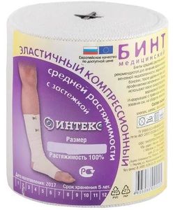 Размер: 10 см х 5,0 м с застежкой.Растяжимость не менее 100 %.Эластичный бинт обладает средней растяжимостью. Бинты изготовлены из тонкой смесовой пряжи хлопка и полиамида.Высокое содержание в бинтах хлопка делает их комфортными в использовании и предотвращает избыточное растяжение, а полиамид делает их оптимально эластичными. Тонкое полотно бинта незаметно под одеждой, не препятствует воздухо- и влагообмену кожных покровов. Конец бинта закрепляется специальной металлической застёжкой-клипсой, которая в отличии от стандартных "липучек" не цепляется к одежде и не "махрит" бинт, тем самым наделяя его улучшенными потребительскими свойствами, повышенной надёжностью и безопасностью.Преимущества:Материалы, входящие в состав бинта, обеспечивают уникальную совокупность полезных свойств изделия: Латексная нить с заданной степенью преднатяжения обеспечивает нужную растяжимость бинта и эластичность. Хлопок придаёт изделию мягкость и высокую степень комфорта кожи при использовании бинта. Полиэфирная нить обеспечивает плотность изделия, износостойкость и длительный срок эксплуатации. Застёжки — металлические фиксаторы (клипсы) позволяют закреплять бинт в нужном месте.