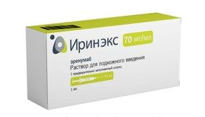 Показания к применениюПрофилактика мигрени у взрослых, которые имеют по крайней мере 4 дня мигрени в течение месяца.Применение при беременности и кормлении грудьюПрепарат противопоказан для применения в период беременности и в период грудного вскармливания.ПротивопоказанияПовышенная чувствительность, детский и подростковый возраст до 18 лет, беременность и период лактации (грудного вскармливания), тяжелая почечная и печеночная недостаточность.Побочное действиеСо стороны иммунной системы: реакции гиперчувствительности, включая сыпь, отек и крапивницу.Со стороны пищеварительной системы: запор.Со стороны костно-мышечной системы: мышечный спазм.Со стороны кожи и подкожных тканей: зуд.Общие: реакции в месте введения.СоставЭренумаб 70 мг. Вспомогательные вещества: сахароза, полисорбат 80, уксусная кислота ледяная, натрия гидроксид, вода д/и.