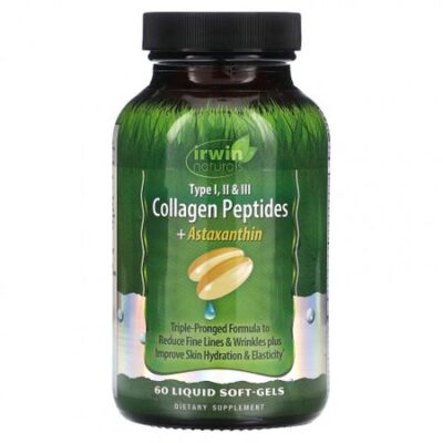 Irwin Naturals, Коллагеновые пептиды + астаксантин, тип I, II и III, 60 мягких таблеток