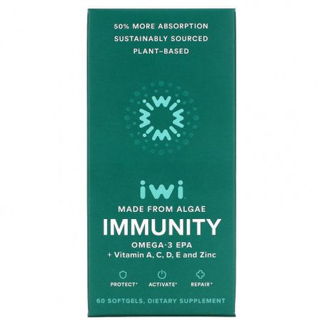 iWi, Immunity, омега-3 ЭПК с витаминами A, C, D, E и цинком, 60 мягких таблеток