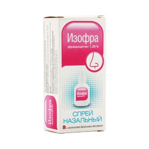 Показания к применениюВ составе комбинированной терапии при инфекционно-воспалительных заболеваниях верхних отделов дыхательных путей, в т.ч.: Риниты, Ринофарингиты, Синуситы (при отсутствии повреждений перегородки).Профилактика и лечение воспалительных процессов после оперативных вмешательств.Применение при беременности и кормлении грудьюАдекватных и строго контролируемых клинических исследований безопасности применения препарата Изофра при беременности и в период лактации (грудного вскармливания) не проводилось.ПротивопоказанияПовышенная чувствительность к фрамицетину и другим антибиотикам из группы аминогликозидов.Побочное действиеАллергические реакции: в единичных случаях — кожные проявления.Состав1 мл раствора спрея назального содержит:Активное вещество: фрамицетина сульфат — 12,5 мг (8 тыс. МЕ).Вспомогательные вещества: метилпарагидроксибензоат, натрия хлорид, лимонная кислота, вода дистиллированная.Взаимодействие с другими препаратамиКлинически значимых взаимодействий препарата Изофра с другими лекарственными средствами не выявлено.