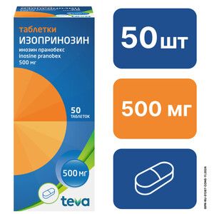 Показания к применению– лечение гриппа и других ОРВИ– инфекции, вызываемые вирусом Herpes simplex 1-го, 2-го, 3-го и 4-го типов: генитальный и лабиальный герпес, герпетический кератит, опоясывающий лишай, ветряная оспа, инфекционный мононуклеоз, вызванный вирусом Эпштейна-Барр– цитомегаловирусная инфекция– корь тяжелого течения– папилломавирусная инфекция: папилломы гортани/голосовых связок (фиброзного типа), папилломавирусная инфекция гениталий у мужчин и женщин, бородавки– контагиозный моллюск– подострый склерозирующий панэнцефалит.Применение при беременности и кормлении грудьюБеременностьПрепарат противопоказан во время беременности, так как безопасность применения не исследовалась.Период грудного вскармливанияОтсутствуют данные по экскреции изопринозина или его метаболитов с грудным молоком. Нельзя исключить риск для младенца. Во время лечения препаратом грудное вскармливание следует прекратить.ФертильностьОтсутствуют данные о влиянии препарата на фертильность человека. Исследования у животных не показали влияния на фертильность.Противопоказания– повышенная чувствительность к компонентам препарата– подагра– мочекаменная болезнь– аритмии– хроническая почечная недостаточность– детский возраст до 3 лет (масса тела до 15-20 кг)– беременность и период грудного вскармливания.Состав1 таблетка содержит:действующее вещество: инозин пранобекс (изопринозин) — 500 мгвспомогательные вещества: маннитол 67,0 мг, крахмал пшеничный 67,0 мг, повидон К 30 10,0 мг, магния стеарат 6,0 мг.Взаимодействие с другими препаратамиПри одновременном применении иммунодепрессанты могут снижать эффективность Изопринозина. Ингибиторы ксантиноксидазы и урикозурические средства (в т.ч. диуретики) могут способствовать риску повышения уровня мочевой кислоты в сыворотке крови пациентов, принимающих Изопринозин.