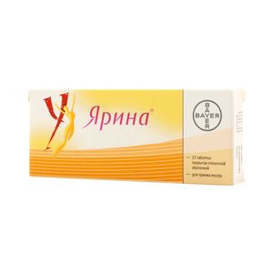 Показания к применениюКонтрацепция.Применение при беременности и кормлении грудьюПрепарат не назначается при беременности и в период кормления грудью.Если беременность выявляется во время применения препарата Ярина;, препарат следует сразу же отменить. Однако обширные эпидемиологические исследования не выявили повышенного риска дефектов развития у детей, рожденных женщинами, получавших половые гормоны до беременности, или тератогенного действия, когда половые гормоны принимались по неосторожности в ранние сроки беременности.В то же время, данные о результатах приема препарата Ярина; при беременности ограничены, что не позволяет сделать какие-либо выводы о негативном влиянии препарата на беременность, здоровье новорожденного и плода. В настоящее время какие-либо значимые эпидемиологические данные отсутствуют.Прием комбинированных пероральных контрацептивов может уменьшать количество грудного молока и изменять его состав, поэтому их использование не рекомендуется до прекращения грудного вскармливания. Небольшое количество половых стероидов и/или их метаболитов может выводиться с молоком.ПротивопоказанияТромбозы (венозные и артериальные) в настоящее время или в анамнезе (в т.ч. тромбоз глубоких вен, тромбоэмболия легочной артерии, инфаркт миокарда, цереброваскулярные нарушения);— состояния, предшествующие тромбозу (в т.ч. транзиторные нарушения мозгового кровообращения, стенокардия) в настоящее время или в анамнезе;— мигрень с очаговыми неврологическими симптомами в настоящее время или в анамнезе;— сахарный диабет с сосудистыми осложнениями;— множественные или выраженные факторы риска венозного или артериального тромбоза (в т.ч. осложненные поражения клапанного аппарата сердца, фибрилляция предсердий, заболевания сосудов головного мозга или коронарных артерий; неконтролируемая артериальная гипертензия, серьезное хирургическое вмешательство с длительной иммобилизацией, курение в возрасте старше 35 лет);— панкреатит с выраженной гипертриглицеридемией в настоящее время или в анамнезе;— печеночная недостаточность и тяжелые заболевания печени (до нормализации печеночных проб);— опухоли печени (доброкачественные или злокачественные) в настоящее время или в анамнезе;— тяжелая и/или острая почечная недостаточность;— выявленные гормонозависимые злокачественные заболевания (в т.ч. половых органов или молочных желез) или подозрение на них;— кровотечение из влагалища неясного генеза;— беременность или подозрение на нее;— лактация (грудное вскармливание);— повышенная чувствительность к компонентам препарата.Если какие-либо из перечисленных выше заболеваний или состояний развиваются впервые на фоне приема препарата, то его следует немедленно отменить.СоставВ 1 таблетке: этинилэстрадиол 30 мкг; дроспиренон 3 мг.Вспомогательные вещества: лактозы моногидрат — 48.17 мг, крахмал кукурузный — 14.4 мг, крахмал кукурузный прежелатинизированный — 9.6 мг, повидон К25 — 4 мг, магния стеарат — 800 мкг.