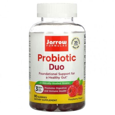 Jarrow Formulas, Дуэт пробиотиков, малина, 3 млрд, 90 жевательных таблеток