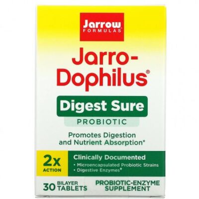 ‡ Оптимальный уровень pH ПробиотикиСпособствует пищеварению и усвоению питательных веществ 2x действиеДобавка с пробиотиками и ферментами Без глютенаВеганский продукт Клинически подтверждено Микрокапсулированные штаммы пробиотиков Пищеварительные ферменты Способствует пищеварению и усвоению питательных веществJarro-Dophilus® Digest Sure сочетает в себе 5 клинически подтвержденных штаммов пробиотиков с пищеварительными ферментами, способствующими пищеварению и усвоению питательных веществ. Все функциональные типы ферментов (амилаза, протеаза, липаза, альфа-галактозидаза, лактаза и пептидаза) проходят клинические исследования. Двойное действие с двухслойными таблетками5 штаммов пробиотиков в Jarrow-Dophilus® Digest Sure заключены в микрокапсулы для повышения выживаемости в желудке и кишечном тракте. Пробиотики отделяются от ферментов в виде двухслойных таблеток для обеспечения оптимальной эффективности во время употребления.