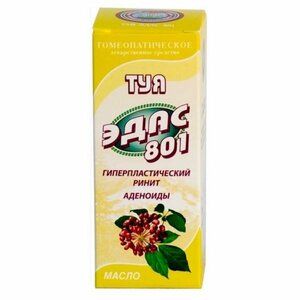 Масло «Туя Эдас 801» облегчает состояние заложенности носа, обладает метаболическим действием. Характеризуется противомикробным, антисептическим, противовоспалительным свойством. Обладает сосудосуживающим эффектом. Активизирует иммунную систему организма.Масло туи применяется для лечения взрослых людей и лиц детского возраста. Оно хорошо совмещается с другими медицинскими и натуральными препаратами.