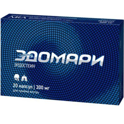Показания Быстро абсорбируется из ЖКТ. Повторное применение или одновременный прием пищи не влияют на фармакокинетические параметры. Cmax — 3.46 мкг/мл; Тmax — 1.48 ч; AUC 0-24 ч — 12.09. Связывание с белками плазмы составляет 64.5%. Метаболизируется в печени до трех активных метаболитов, наиболее важный из которых — N-тиодигликолил-гомоцистеин (Метаболит 1 или M1). T1/2 — более 5 ч. Выводится в виде неорганических сульфатов почками и через кишечник. В случае нарушения функции печени отмечается увеличение значений Cmax и AUC. Возможно увеличение T1/2 при выраженном нарушении функции печени. При почечной недостаточности возможна кумуляция метаболитов. Фармакологическое действие Муколитическое средство. Эффективность эрдостеина обусловлена действием активных метаболитов. Тиоловые группы метаболитов вызывают разрыв дисульфидных мостиков, которые связывают одно с другим волокна гликопротеинов, что приводит к уменьшению эластичности и вязкости мокроты. В результате эрдостеин усиливает и ускоряет освобождение респираторных путей от секрета, улучшает секреторную функцию эпителия и увеличивает эффективность мукоцилиарного транспорта в верхних и нижних отделах респираторного тракта. Эрдостеин оказывает антиоксидантное действие и переносит свободные радикалы; в частности, эрдостеин защищает дыхательные пути от повреждающего действия сигаретного дыма в отношении инактивации альфа-1-антитрипсина. Эрдостеин увеличивает концентрацию IgA в слизистой оболочке дыхательных путей у больных с хроническими обструктивными заболеваниями дыхательных путей, а также снижает подавляющее действие табачного дыма на функции гранулоцитов. Терапевтический эффект от терапии препаратом развивается на 3-4 сутки лечения. Эрдостеин как таковой не содержит свободные SH-радикалы, и поэтому не оказывает повреждающего действия на ЖКТ. Лекарственное взаимодействие При совместном применении эрдостеин увеличивает концентрацию амоксициллина в бронхиальном секрете, что позволяет добиться более быстрого ответа на терапию по сравнению с монотерапией амоксициллином.