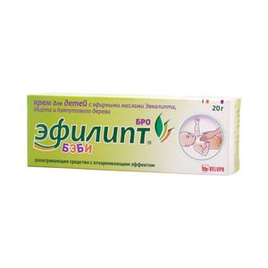 Противовоспалительное средство для местного применения. Разогревающее средство растительного происхождения с отхаркивающим эффектом. Активные эфирные масла, входящие в состав препарата Эфилипт Бро Бэби, оказывают разогревающее, бронхолитическое, отхаркивающее, противовоспалительное и активное противомикробное действие.
