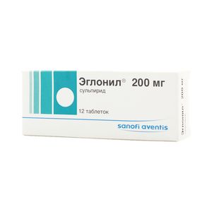 Показания к применениюВ качестве монотерапии или в сочетании с другими психотропными препаратами:- острая и хроническая шизофрения;- острые делириозные состояния;- депрессии различной этиологии;- неврозы и беспокойство у взрослых пациентов, при неэффективности обычных методов лечения (только для капсул 50 мг);- тяжелые нарушения поведения (ажитация, членовредительство, стереотипия) у детей в возрасте старше 6 лет, в особенности в сочетании с синдромами аутизма (только для капсул 50 мг).Применение при беременности и кормлении грудьюПри беременности и в период лактации применять с осторожностью и в минимальных эффективных дозах.ПротивопоказанияПролактин-зависимые опухоли (например, пролактиномы гипофиза и рак молочной железы);- гиперпролактинемия;- острая интоксикация этанолом, снотворными средствами, опиоидными анальгетиками;- аффективные расстройства, агрессивное поведение, маниакальный психоз;- феохромоцитома;- период грудного вскармливания;- детский возраст до 18 лет (для таблеток и раствора для в/м введения);- детский возраст до 6 лет (для капсул);- в комбинации с сультопридом, агонистами допаминергических рецепторов (амантадин, апоморфин, бромокриптин, каберголин, энтакапон, лизурид, перголид, пирибедил, прамипексол, кинаголид, ропинирол);- повышенная чувствительность к сульпириду или другому ингредиенту препарата.В связи с наличием в составе препарата лактозы, он противопоказан при врожденной галактоземии, синдроме мальабсорбции глюкозы/галактозы или дефиците лактазы.СоставДействующее вещество: Сульпирид (Sulpiridum)Концентрация действующего вещества (мг): 200Взаимодействие с другими препаратамиПри одновременном применении лекарственных средств, угнетающих ЦНС (опиоидных анальгетиков, снотворных, транквилизаторов, клонидина, противокашлевых средств центрального действия), усиливается угнетающее влияние на ЦНС.При одновременном применении с антигипертензивными средствами усиливается антигипертензивное действие и увеличивается риск развития ортостатической гипотензии.При одновременном применении с леводопой снижается эффективность сульпирида.Описаны случаи развития тяжелых экстрапирамидных реакций при одновременном применении сульпирида с лития карбонатом.При одновременном применении с флуоксетином возможно развитие экстрапирамидных симптомов и дистонии.