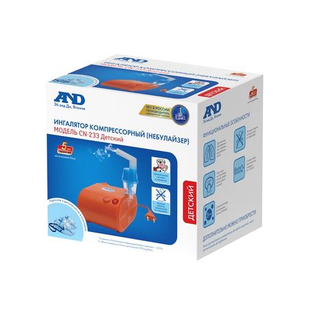 Компрессорный ингалятор CN-233 Детский, в ярком оранжевом цвете корпуса с комплектом декоративных наклеек, разработан компанией ЭЙ энд ДИ. Компания ЭЙ энд ДИ – №1 производитель медицинской техники в России по данным АО «Группа ДСМ» по количеству (в шт.) в аптеках России за период 2019-2022 гг. Продукция ЭЙ энд ДИ – это высокое качество и точный выбор! Отличительными функциональными особенностями ингалятора CN-233 Детский являются: • Применяется при широком спектре заболеваний, в том числе: ларингите, ларинготрахеите, бронхите, хронической обструктивной болезни лёгких, бронхиальной астме, ОРВИ, пневмонии • Для лечения и профилактики заболеваний всех отделов дыхательных путей: верхних и нижних • Произведён в соответствии с Европейским стандартом EN 13544-1 • С функцией защиты компрессора от перегрева • В комплекте взрослая и детская маски, насадки для носа и рта • Возможность использования масок других размеров (маска универсальная для детей и взрослых и маска для грудничков), которые можно приобрести дополнительно. • Средний размер частиц аэрозоля (MMAD) — 3 мкм • Скорость распыления — 0,25 мл/мин • Удобный кейс для хранения и переноски и набор декоративных наклеек в комплекте • Гарантия на основной блок в корпусе — 5 лет