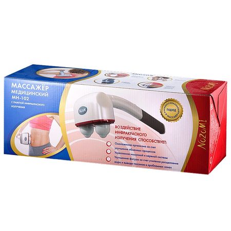 Медицинский массажёр Nozomi MH-102 обеспечивает интенсивный массаж, который способствует снятию тяжести и напряжения мышц, а также улучшает и стимулирует циркуляцию крови и иммунитет. Отличительными функциональными особенностями массажёра Nozomi MH-102 являются: • Две массажные насадки оказывают массажное воздействие за счёт высокоскоростной вибрации, обеспечивают интенсивный и глубокий массаж • Две скорости вибрации: 3 400 ± 10% и 6 000 ± 10% уд. /мин • Лампа инфракрасного излучения — генерирует тепловое излучение, которое положительно воздействует на организм, прогревая массируемые участки тела • Длинная эргономичная ручка с удобным хватом — позволяет массировать все тело (включая спину) самостоятельно • Мощный