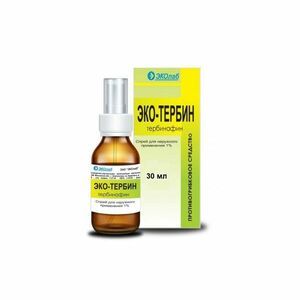 Главная » Аптека ЭКО-Тербин Спрей для наружного применения 1 % 30 мл Просмотров 3 Спрей для наружного применения.Прозрачная бесцветная или слегка желтоватая жидкость с запахом лимона. Эколаб