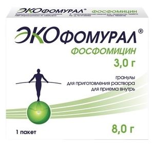 Показания к применениюБактериальные инфекции мочевыводящих путей различной локализации, вызываемые чувствительными к фосфомицину микроорганизмами:Острые неосложненные инфекции мочевыводящих путей.Бессимптомная бактериурия.Профилактика инфекций мочевыводящих путей после хирургического вмешательства и трансуретральных диагностических исследований.Применение при беременности и кормлении грудьюПри беременности препарат применяют только в случае, если предполагаемая польза для матери превышает потенциальный риск для плода. При назначении препарата в период лактации необходимо прекратить грудное вскармливание на время терапии.ПротивопоказанияПовышенная чувствительность к фосфомицину или другим компонентам препарата. Тяжелая почечная недостаточность (кк меньше10 мл/мин). Детский возраст до 5 лет.Дефицит сахаразы/изомальтазы, непереносимость фруктозы, глюкозо-галактозная мальабсорбция.Побочное действиеСо стороны пищеварительной системы тошнота, изжога, понос, рвота, диспепсия, псевдомембранозный колит, боль в животе, повышение активности печеночных трансаминаз.Со стороны сердечно-сосудистой системы тахикардия, снижение АД.Со стороны нервной системы головная боль, головокружение, астения, парестезия (ощущение онемения кожи, ползание мурашек), неврит зрительного нерва.Аллергические реакции кожная сыпь, аллергические реакции, кожный зуд, бронхиальная астма, ангионевротический отек, крапивница, анафилактический шок.Прочие вульвовагинит, тромбоцитоз, лейкопения.СоставВ 1 пакете содержится: фосфомицина трометамол 5.629 г, что соответствует содержанию фосфомицина 3 г Вспомогательные вещества: лактулоза — 1.5 г, натрия сахаринат — 0.016 г, ароматизатор клубничный — 0.07 г, мальтитол — до массы 8 г.Взаимодействие с другими препаратамиСледует избегать одновременного приема с метоклопрамидом, антацидами или препаратами, содержащими соли кальция, т.к. это может привести к снижению концентрации фосфомицина в сыворотке крови и моче. Одновременный прием с другими препаратами, которые усиливают моторику ЖКТ, также может привести к снижению концентрации фосфомицина в сыворотке крови и моче.