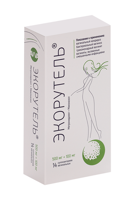 Экорутель 500 мг+100 мг, 14 шт, суппозитории вагинальные