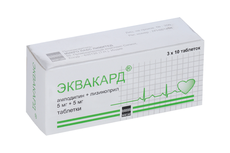 Эквакард 5 мг+5 мг, 30 шт, таблетки