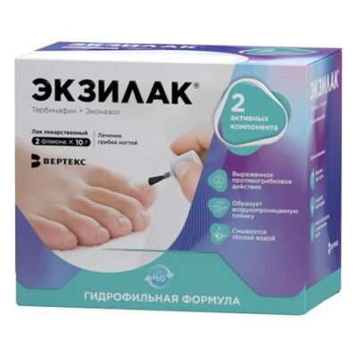 Экзилак лак для ногтей 4%+3% фл. 10г №2+пилочки №30