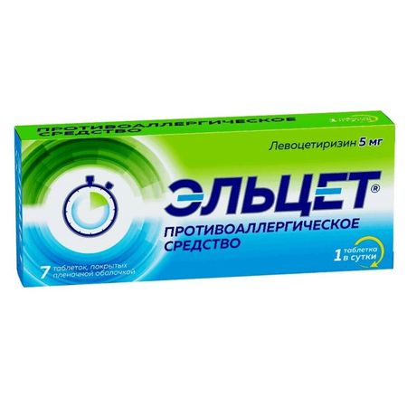Показания Симптоматическое лечение симптомов круглогодичного и сезонного аллергического ринита (в т.ч. персистирующего аллергического ринита) и аллергического конъюнктивита: чиханье, ринорея, слезотечение, гиперемия конъюнктивы; сенная лихорадка (поллиноз); крапивница (в т.ч. хроническая идиопатическая крапивница); другие аллергические дерматозы, сопровождающиеся зудом и сыпью; отек Квинке. Фармакологическое действие Противоаллергическое средство. Левоцетиризин, (R)-энантиомер цетиризина, является избирательным антагонистом периферических гистаминовых Н1-рецепторов. Сродство левоцетиризина (Ki = 3.2 нмоль/л) с гистаминовыми H1-рецепторами в 2 раза выше, чем у цетиризина (Ki = 6.3 нмоль/л). Исследования фармакокинетики у здоровых добровольцев показали, что при нанесении на кожу и на слизистую оболочку носа активность левоцетиризина в половине дозы сопоставима активности цетиризина в целой дозе. Левоцетиризин подавляет активность эотаксин-индуцированной трансэндотелиальной миграции эозинофилов в клетках кожи и легких. Фармакодинамические исследования продемонстрировали три основных подавляющих эффекта левоцетиризина в дозе 5 мг в первые 6 ч после контакта с пыльцой: подавление выброса VCAM-1, изменение сосудистой проницаемости и уменьшение активации эозинофилов. Как и у цетиризина, действие в отношении гистамин-индуцированных кожных реакций не зависит от плазменных концентраций препарата. Левоцетиризин предупреждает развитие и облегчает течение аллергических реакций, оказывает антиэкссудативное, противозудное действие; практически не оказывает антихолинергического и антисеротонинового действия. Левоцетиризин в дозе 5 мг способствует угнетению воспалительно-эксудативной реакции на гистамин в той же степени, что и цетиризин в дозе 10 мг. ЭКГ не выявила значительного действия левоцетиризина на интервал QT. Лекарственное взаимодействие Уменьшение клиренса цетиризина (16%) наблюдалось при многократных введениях теофиллина (400 мг 1 раз/сут); при этом фармакокинетика теофиллина при одновременном введении цетиризина не изменялась. У восприимчивых пациентов одновременное применение левоцетиризина и этанола или других угнетающих ЦНС средств может приводить к потенцированию угнетающего влияния на ЦНС.