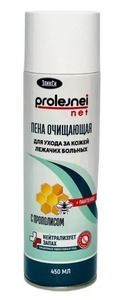 Пена очищающая «ЭликСи PROLEJNEI NET для ухода за кожей лежачих больных «с прополисом» — используется для ежедневного ухода за кожей лежачих больных и людей с ограниченной подвижностью при проведении гигиенических процедур при смене подгузника или пеленки.Внешний вид и свойства: Однородная, пенообразная масса без посторонних примесей с легким освежающим запахом.Пена применяется для очищения, увлажнения и смягчения кожи лежачих больных, заменяя мытье водой и моющими средствами.Благодаря натуральным активным компонентам, успокаивает и питает кожу.Входящий в состав пены натуральный экстракт прополиса содержит биологически активные вещества и микроэлементы.Содержит компонент polyfix ZRC 25 GR, являющимся нейтрализатором запаха пота, мочи, рвоты и т.п.Активные компоненты в составе пены: д-пантенол, бисаболол, polyfix ZRC 25 GR, натуральный экстракт прополиса.Свойства: Обладает антимикробным действием, Очищает, регенерирует и тонизирует кожу, Не сушит кожуСпециальные особенности: Без красителей.Результат: Очищает и смягчает кожу лежачего больного. Способствует удалению неприятных запахов.