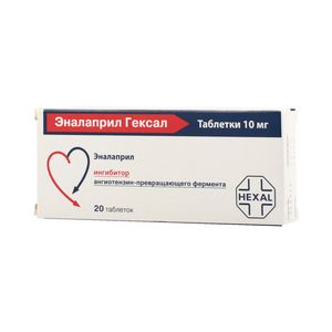 Показания к применениюартериальная гипертензия; хроническая сердечная недостаточность (в составе комбинированной терапии); профилактика развития клинически выраженной сердечной недостаточности у пациентов с бессимптомным нарушением функции левого желудочка (в составе комбинированной терапии).Применение при беременности и кормлении грудьюПрименение препарата Эналаприл Гексал при беременности не рекомендуется. При наступлении беременности прием препарата Эналаприл Гексал следует немедленно прекратить. Ингибиторы АПФ могут вызывать заболевание или гибель плода или новорожденного при назначении во II и III триместрах беременности. Применение ингибиторов АПФ во время этого периода сопровождалось отрицательным воздействием на плод и новорожденного, включая развитие артериальной гипотензии, почечной недостаточности, гиперкалиемии и/или гипоплазии костей черепа у новорожденного. Возможно развитие олигогидрамниона, по-видимому, вследствие снижения функции почек плода. Это осложнение может приводить к контрактуре конечностей, деформации костей черепа, включая его лицевую часть, гипоплазии легких. При назначении препарата Эналаприл Гексал необходимо информировать пациентку относительно потенциального риска для плода. Эналаприл, который проникает через плаценту, может быть частично удален из кровообращения новорожденного с помощью перитонеального диализа; теоретически он может быть удален посредством обменного переливания крови. За новорожденными и грудными детьми, которые подвергались внутриутробному воздействию препарата Эналаприл Гексал, рекомендуется вести тщательное наблюдение для своевременного выявления выраженного снижения АД, олигурии, гиперкалиемии и неврологических расстройств, возможных вследствие уменьшения почечного и мозгового кровотока при снижении АД, вызываемом ингибиторами АПФ. При олигурии необходимо поддержание АД и почечной перфузии путем введения соответствующих жидкостей и сосудосуживающих лекарственных средств. Эналаприл и эналаприлат выделяются с грудным молоком в следовых концентрациях, при применении препарата в терапевтических дозах воздействие на ребенка маловероятно. Однако прием препарата противопоказан при грудном вскармливании недоношенных детей и в первые несколько недель после родов в связи с риском развития побочного действия у новорожденных со стороны сердечно-сосудистой системы и почек, а также ввиду отсутствия достаточного клинического опыта. При необходимости назначения препарата Эналаприл Гексал кормящей матери, следует решить вопрос о прекращении грудного вскармливания.Состав1 таблетка содержит:Активное вещество: эналаприла малеат 10 мг.
