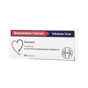 Показания к применениюартериальная гипертензия; хроническая сердечная недостаточность (в составе комбинированной терапии); профилактика развития клинически выраженной сердечной недостаточности у пациентов с бессимптомным нарушением функции левого желудочка (в составе комбинированной терапии).Применение при беременности и кормлении грудьюПрименение препарата Эналаприл Гексал при беременности не рекомендуется. При наступлении беременности прием препарата Эналаприл Гексал следует немедленно прекратить. Ингибиторы АПФ могут вызывать заболевание или гибель плода или новорожденного при назначении во II и III триместрах беременности. Применение ингибиторов АПФ во время этого периода сопровождалось отрицательным воздействием на плод и новорожденного, включая развитие артериальной гипотензии, почечной недостаточности, гиперкалиемии и/или гипоплазии костей черепа у новорожденного. Возможно развитие олигогидрамниона, по-видимому, вследствие снижения функции почек плода. Это осложнение может приводить к контрактуре конечностей, деформации костей черепа, включая его лицевую часть, гипоплазии легких. При назначении препарата Эналаприл Гексал необходимо информировать пациентку относительно потенциального риска для плода. Эналаприл, который проникает через плаценту, может быть частично удален из кровообращения новорожденного с помощью перитонеального диализа; теоретически он может быть удален посредством обменного переливания крови. За новорожденными и грудными детьми, которые подвергались внутриутробному воздействию препарата Эналаприл Гексал, рекомендуется вести тщательное наблюдение для своевременного выявления выраженного снижения АД, олигурии, гиперкалиемии и неврологических расстройств, возможных вследствие уменьшения почечного и мозгового кровотока при снижении АД, вызываемом ингибиторами АПФ. При олигурии необходимо поддержание АД и почечной перфузии путем введения соответствующих жидкостей и сосудосуживающих лекарственных средств. Эналаприл и эналаприлат выделяются с грудным молоком в следовых концентрациях, при применении препарата в терапевтических дозах воздействие на ребенка маловероятно. Однако прием препарата противопоказан при грудном вскармливании недоношенных детей и в первые несколько недель после родов в связи с риском развития побочного действия у новорожденных со стороны сердечно-сосудистой системы и почек, а также ввиду отсутствия достаточного клинического опыта. При необходимости назначения препарата Эналаприл Гексал кормящей матери, следует решить вопрос о прекращении грудного вскармливания.Состав1 таблетка содержит:Активное вещество: эналаприла малеат 10 мг.