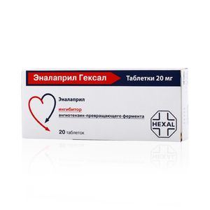 Показания к применениюАртериальная гипертензия (в т.ч. реноваскулярная), хроническая сердечная недостаточность (в составе комбинированной терапии).Применение при беременности и кормлении грудьюПротивопоказан.ПротивопоказанияАнгионевротический отек в анамнезе, двусторонний стеноз почечных артерий или стеноз почечной артерии единственной почки, гиперкалиемия, беременность, повышенная чувствительность к эналаприлу и другим ингибиторам АПФ.Побочное действиеСо стороны ЦНС и периферической нервной системы: головокружение, головная боль, чувство усталости, повышенная утомляемость; очень редко при применении в высоких дозах — расстройства сна, нервозность, депрессия, нарушение равновесия, парестезии, шум в ушах.Со стороны сердечно-сосудистой системы: ортостатическая гипотензия, обморок, сердцебиение, боли в области сердца; очень редко при применении в высоких дозах — приливы.Со стороны пищеварительной системы: тошнота; редко — сухость во рту, боли в животе, рвота, диарея, запор, нарушение функции печени, повышение активности печеночных трансаминаз, повышение концентрации билирубина в крови, гепатит, панкреатит; очень редко при применении в высоких дозах — глоссит.Со стороны системы кроветворения: редко — нейтропения; у пациентов с аутоиммунными заболеваниями — агранулоцитоз.Со стороны мочевыделительной системы: редко — нарушения функции почек, протеинурия.Со стороны дыхательной системы: сухой кашель.Со стороны репродуктивной системы: очень редко при применении в высоких дозах — импотенция.Дерматологические реакции: очень редко при применении в высоких дозах — выпадение волос.Аллергические реакции: редко — кожная сыпь, отек Квинке.Прочие: редко — гиперкалиемия, мышечные судороги.СоставДействующее вещество: Эналаприла малеатКонцентрация действующего вещества (мг): 20Взаимодействие с другими препаратамиПри одновременном применении с иммунодепрессантами, цитостатиками повышается риск развития лейкопении.При одновременном применении калийсберегающих диуретиков (в т.ч. спиронолактона, триамтерена, амилорида), препаратов калия, заменителей соли и БАД к пище, содержащих калий, возможно развитие гиперкалиемии (особенно у пациентов с нарушениями функции почек), т.к. ингибиторы АПФ уменьшают содержание альдостерона, что приводит к задержке калия в организме на фоне ограничения выведения калия или его дополнительного поступления в организм.При одновременном применении опиоидных анальгетиков и средств для наркоза усиливается антигипертензивное действие эналаприла.При одновременном применении петлевых диуретиков, тиазидных диуретиков усиливается антигипертензивное действие. Имеется риск развития гипокалиемии. Повышение риска нарушения функции почек.При одновременном применении с азатиоприном возможно развитие анемии, что обусловлено угнетением активности эритропоэтина под влиянием ингибиторов АПФ и азатиоприна.