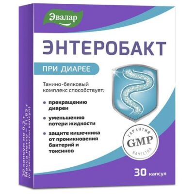 Диарея может настигнуть в самый неподходящий момент и доставить много неудобств. Для устранения диареи компания «Эвалар» разработала новинку – Энтеробакт. Входящий в состав танино-белковый комплекс в сочетании с цинком за счет двойного механизма действия способствует контролю и регрессии симптомов диареи различной этиологии, быстрому снижению острой не специфической диареи (поноса), защите кишечника от агрессивного действия бактерий, токсинов и кислот, а также уменьшению воспалительных процессов и уменьшению потери жидкости и электролитов, способствует облегчению расстройств пищеварения, тошноты и рвоты. Энтеробакт от компании «Эвалар» – современный комплекс против диареи решает сразу несколько проблем: Прекращает диарею Уменьшает потерю жидкости Защищает кишечник от проникновения бактерий и токсинов Как работают ингредиенты? Танины обладают вяжущими,противовоспалительными, обволакивающими свойствами, выполняют функцию натуральных антибиотиков, нейтрализующих патогенные бактерии, выводят вредные вещества из организма после отравления, а также шлаки и токсины, препятствуют отложению солей тяжелых металлов, защищают слизистую ЖКТ от воспалений, создавая защитную оболочку. Цинка бисглицинат – легкодоступный цинк в хелатной форме для максимального усвоения. Цинк в виде водорастворимых соединений рекомендован Всемирной организацией здравоохранения (ВОЗ) при диарее. Существует несколько механизмов действия цинка при острой диарее: цинк восстанавливает целостность барьера слизистых оболочек, способствует выработке антител и циркулирующих лимфоцитов против кишечных патогенов, принимает участие в транспорте воды и электролитов в кишечник, предотвращает обезвоживание при расстройстве стула, а также значительно сокращает кратность «походов в туалет». Экстракт корневищ имбиря, содержащий гингерол обладает выраженным противовоспалительным, антисептическим и обезболивающим действием, широко используется при расстройствах пищеварения, тошноте любого происхождения. Стимулирует деятельность ЖКТ и блокирует нервные импульсы, которые вызывают рвотные позывы. Также гингерол снижает выработку простагландинов, препятствуя развитию воспалительного процесса, уменьшает болевые ощущения устраняя желудочные спазмы, несварение, вздутие и повышенное газообразование.