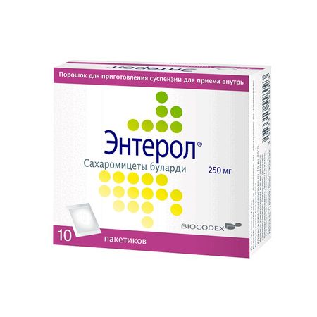 Показания Saccharomyces boulardii не является эубиотиком, не входит в состав микрофлоры здорового организма человека. Saccharomyces boulardii не всасывается, проходит через пищеварительный тракт в неизменном виде, без колонизации. Концентрация Saccharomyces boulardii в кишечнике поддерживается на постоянном уровне в течение периода применения препарата. Saccharomyces boulardii полностью выводится из организма в течение 2-5 дней после прекращения приема препарата. Фармакологическое действие Saccharomyces boulardii CNCMI-745 представляет собой живые непатогенные дрожжи (депонирование — Национальная коллекция культур и микроорганизмов (CNCM), Международный депозитарий, Институт Пастера, Париж). Препарат Saccharomyces boulardii является пробиотиком и действует в ЖКТ как противодиарейный микроорганизм. Фармакодинамику Saccharomyces boulardii изучали на различных моделях в ходе исследований in vitro и in vivo, а также в ходе доклинических и клинических исследований, показавших, что препарат: оказывает антимикробное действие, обусловленное антагонистическим эффектом в отношении патогенных и условно-патогенных микроорганизмов: Clostridium difficile, Candida albicans, Candida krusei, Candida pseudotropicalis, Klebsiella pneumoniae, Pseudomonas aeruginosa, Salmonella typhimurium, Yersinia enterocolitica, Escherichia coli, Shigella dysenteriae, Staphylococcus aureus и других, а также Entamoeba histolytica и Lamblia; обладает антитоксинным действием в отношении бактериальных цито- и энтеротоксинов; повышает ферментативную функцию кишечника; компонент клеточной стенки Saccharomyces boulardii маннитол является субстратом для патогенных штаммов Escherichia coli и Salmonella typhimurium, что обусловливает их адгезию (прикрепление) к поверхности Saccharomyces boulardii и последующее выведение из организма; обладает естественной устойчивостью к антибиотикам. Лекарственное взаимодействие Энтерол® не принимают совместно с противогрибковыми препаратами. Препарат совместим с антибиотиками.
