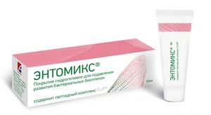 ЭНТОМИКС ПОКРЫТИЕ ГИДРОГЕЛЕВОЕ ДЛЯ ПОДАВЛЕНИЯ РАЗВИТИЯ БАКТЕРИАЛЬНЫХ БИОПЛЕНОК — медицинское изделие, Номер РУ: РЗН 2020/12582 от 17.11.2020.Внешний вид и свойства: Гидрогель, не содержащий посторонних примесей, прозрачный.При нанесении на поврежденный участок кожи покрытие гидрогелевое ЭНТОМИКС® создает пленку на его поверхности, которая обеспечивает механическую защиту поврежденного участка и необходимый для заживления раны уровень влажности.ЭНТОМИКС® препятствует образованию и эффективно борется с бактериальными биопленками, образуемыми золотистым стафилококком, кишечной палочкой и другими патогенами, заселяющими раны, поврежденные участки кожи.ЭНТОМИКС® повышает эффективность медицинских процедур, направленных на удаление бактерий из полости раны или очага воспаления, облегчает доступ к бактериальным клеткам фагоцитов, антибиотиков и других антибактериальных лекарственных средств.ЭНТОМИКС® действует как на чувствительные, так и на устойчивые к антибиотикам бактерии, и не вызывает формирования устойчи¬вости.ЭНТОМИКС® может применяться в сочетании с дополнительными перевязочными материалами, а также в качестве вспомогательного средства при лечении антибиотиками.