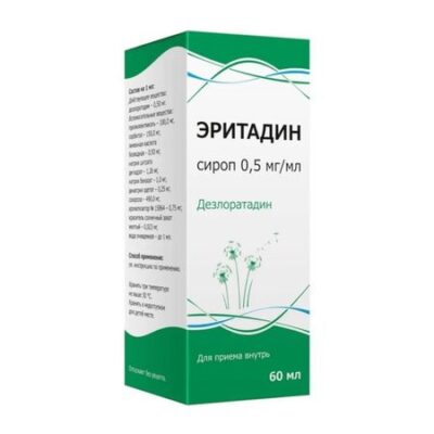 Сироп в виде прозрачной жидкости оранжевого цвета с характерным ягодным запахом. Фармакологическое действие Блокатор гистаминовых Н1-рецепторов (длительного действия). Является первичным активным метаболитом лоратадина. Ингибирует высвобождение гистамина и лейкотриена С4 из тучных клеток. Предупреждает развитие и облегчает течение аллергических реакций. Обладает противоаллергическим, противозудным и противоэкссудативным действием. Уменьшает проницаемость капилляров, предупреждает развитие отека тканей, снимает спазм гладкой мускулатуры. Практически не обладает седативным эффектом и при приеме в дозе 7.5 мг не влияет на скорость психомоторных реакций. В сравнительных исследованиях дезлоратадина и лоратадина качественных или количественных различий токсичности двух препаратов в сопоставимых дозах (с учетом концентрации дезлоратадина) не выявлено. Показания активных веществ препарата Эритадин Сезонный аллергический ринит, хроническая идиопатическая крапивница.