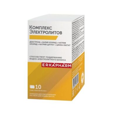 Эркафарм Комплекс Декстроза+Калия Хлорид+Натрия Хлорид+Натрия Цитрат+Цинка Лактат Саше 18,9Г №10