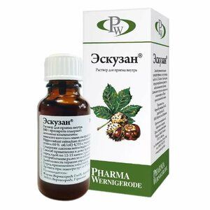 Показания к применениюХроническая венозная недостаточность I–III класса по классификации СЕАР: варикозное расширение вен, отеки, судороги в икроножных мышцах, чувство тяжести в ногах.Применение при беременности и кормлении грудьюИмеются клинические данные о применении Эскузана при беременности у пациенток с варикозным расширением вен и периферическими венозными отеками.С осторожностью следует применять Эскузан в период лактации, т.к. препарат содержит этанол.Противопоказания Повышенная чувствительность к компонентам препарата Эскузан; Заболевания печени; Непереносимость лактозы, дефицит лактазы, глюкозо-галактозная мальабсорбция; Детский возраст (до 12 лет).С осторожностью: алкоголизм; черепно-мозговая травма; заболевания головного мозга; детский возраст (старше 12 лет).Побочное действие Возможны аллергические реакции, раздражение слизистой оболочки ЖКТ, головные боли, головокружение.Состав100 г раствора для приема внутрь содержит:Действующие вещества:конского каштана семян экстракт сухой (Hippocastani extractum siccum normatum) 5–7:1 4,725 г (экстрагент — этанол 60% об/об), тиамина гидрохлорид 0,5 г.Вспомогательные вещества: этанол 96% — 26,4 г; вода очищенная — 67,675 г; лактозы моногидрат — 0,432 г; кремния диоксид коллоидный — 0,243.Взаимодействие с другими препаратамиДействие тиамина уменьшается при одновременном применении с сульфитсодержащими инфузионными растворами.Фторурацил, винбластин, блеомицин, цисплатин нарушают усвоение витамина B1. Пеницилламин, изониазид снижают эффективность витамина B1, увеличивая его выведение.